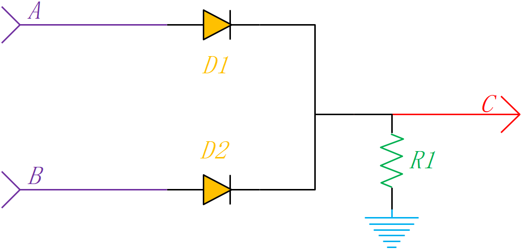 開關(guān)二極管的使用示例介紹1 基本邏輯門開關(guān)二極管可用于極低成本的解決方案中,以實(shí)現(xiàn)簡單、低速的邏輯功能。如圖5-1所示,控制信號(hào)A和B通