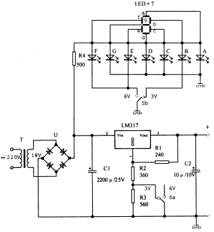 帶數(shù)字顯示的穩(wěn)壓電源圖解用LM317可調(diào)集成穩(wěn)壓器制作的穩(wěn)壓電源,可以輸出多擋不同的電壓。假如這些多擋不同的輸出電壓值能用數(shù)字來(lái)指示該