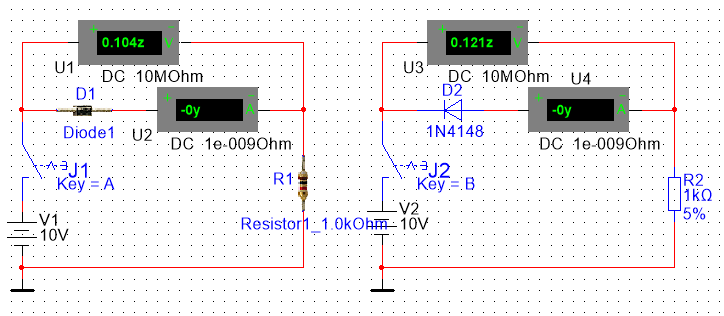 二極管加反向電壓的仿真解析二極管加反向電壓的Multisim仿真及分析斷開(kāi)A、B開(kāi)關(guān)閉合A、B開(kāi)關(guān)先通過(guò)A、B鍵使J1、J2兩個(gè)開(kāi)關(guān)打開(kāi)。打開(kāi)電源開(kāi)